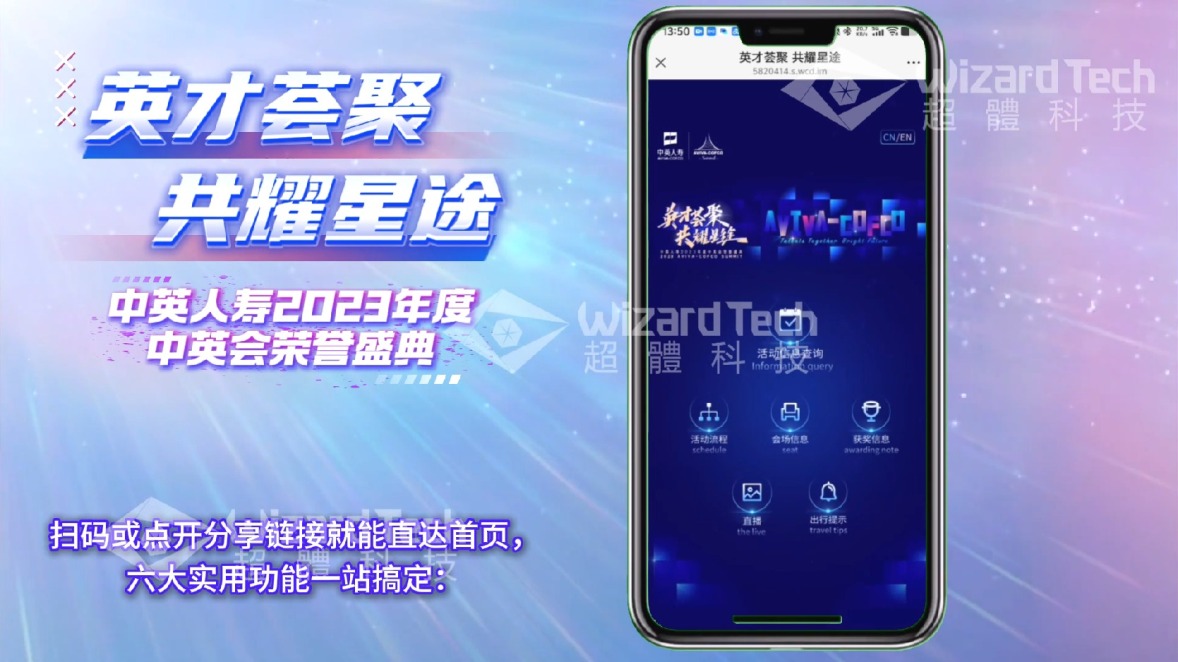 为助力中英人寿2023年度中英会荣誉盛典圆满落幕,我们量身打造专属H5互动服务平台,依托HTML5交互技术、响应式适配技术,整合多元服务功能,实现盛典全流程数字化、便捷化服务,为参会嘉宾提供一站式互动体验,彰显中英人寿作为行业创新标杆的品牌实力与服务温度。